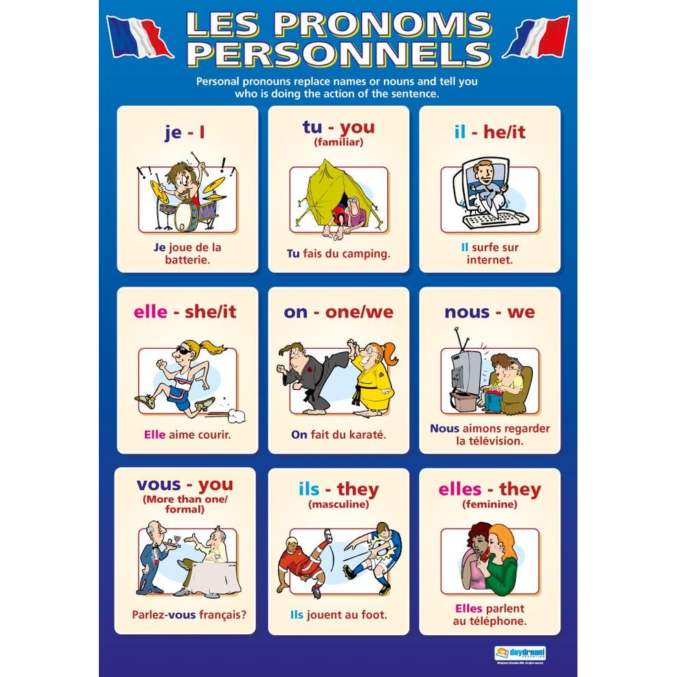Web Venez apprendre le français en ligne gratuitement avec Bonjour de France. Testez vos connaissances sur les pronoms personnels en anglais. 1 frGlisse les étiquettes violettes les pronoms personnels dans les bonnes phrasesfr enSlide the purple labels personal pronouns into the right sentencesen 2.